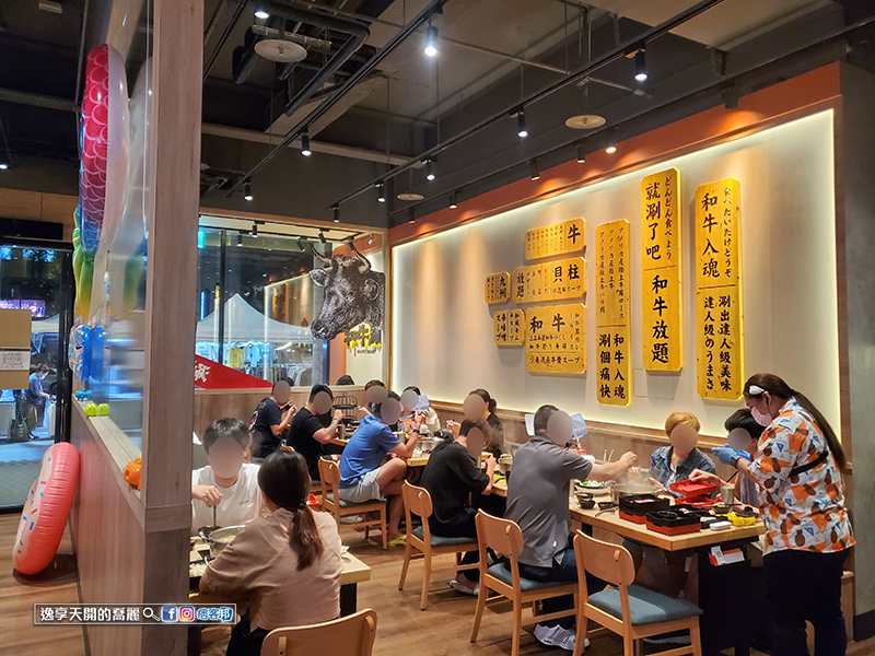 和牛涮日式鍋物放題桃園同德店裝潢很有日式風情,因應活動還有布置海洋風元素,整體木質調裝潢和明亮雅致的室內設計營造出愉悅的用餐氛圍,自助吧取餐區很集中,動線也清晰好取餐,桌次多半是二人桌或四人桌,若多人會安排鄰近位置,很適合親友聚會一起來享受美味的涮鍋之旅~~