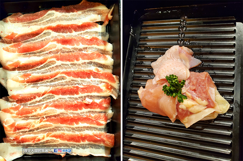 特別的有一盆一盆的鮮肉叭噗「鮮肉漿冰淇淋」和海鮮叭噗「海鮮漿冰淇淋」,就是丸子的肉漿啦,主食區有特色台南好麵,綠色的菠菜細麵和粉紅色的火龍果刀削麵、極上和牛黑咖哩可以淋在飯上享用