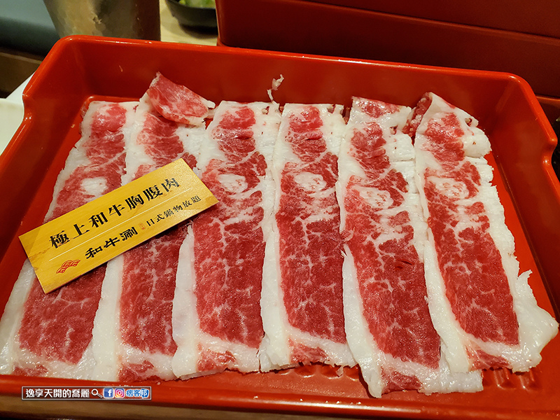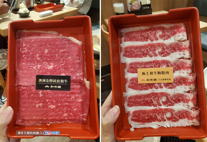我們選擇$858的頂級和牛套餐,肉品是美國澳洲的和牛,湯底是鴛鴦鍋,其中有一邊的固定湯底不能變動是干貝昆布湯,另一邊我們選擇了柴魚壽喜湯,