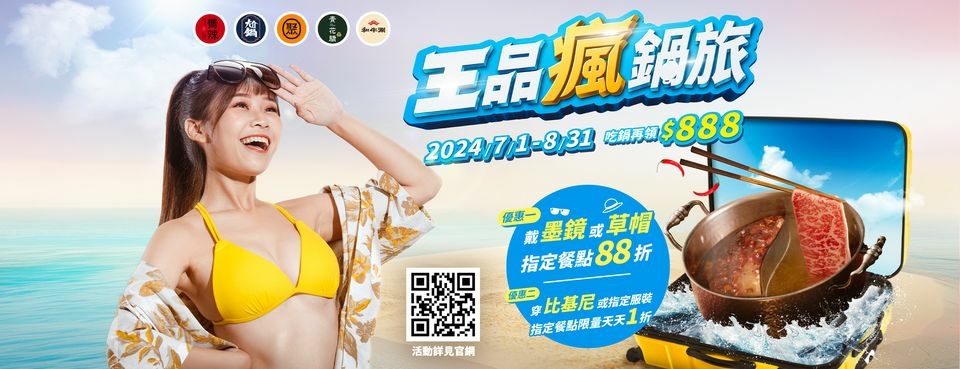 你吃過這樣的和牛吃到飽嗎?上個月看到廣告打很兇的王品集團澎湖海鮮祭優惠方案超心動,看到其中的和牛涮日式鍋物放題活動,穿「比基尼」吃王品「套餐1折」的新聞,不僅有澎湖主題餐點,即日起至8月31日期間,同桌顧客女生穿著比基尼,男生穿泳褲或海灘褲,就可享「指定套餐1折」和牛吃到飽的優惠,另外若穿著「花襯衫」,則可享88折優惠,很幸運朋友有訂到位置,立馬去嘗鮮~~
